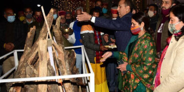 Read moreChief Minister Jai Ram Thakur celebrating Lohri with people of Shimla town today.Chief Minister Jai Ram Thakur alongwith his wife Dr. Sadhna Thakur celebrated Lohri with people of Shimla town...