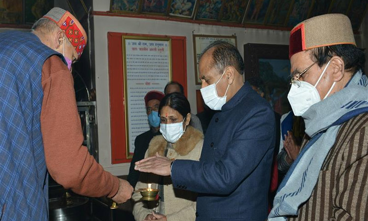 Chief Minister Jai Ram Thakur performing pooja at Jakhu temple today. Chief Minister Jai Ram Thakur alongwith his wife Dr. Sadhna Thakur today visited the famous Jakhu Temple, Shimla and performed pooja on the occasion of New Year.