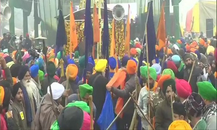 Nagar kirtan (religious procession) was organised in the New Year morning on Friday at Singhu border where farmers have been protesting against the Centre’s new farm laws for over a month now.